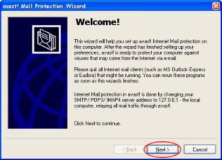 (see fig. l)Now the Avast! Mail Protection Wizard will begin. Click Next.