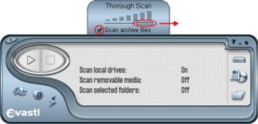 "Thorough Scan" is selected and "Scan archive files" is checked.